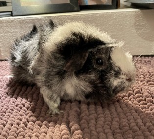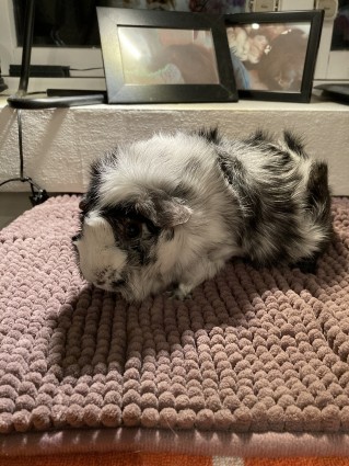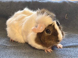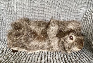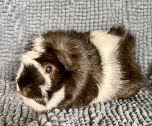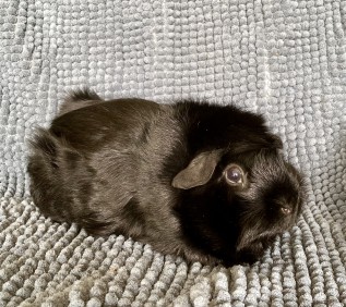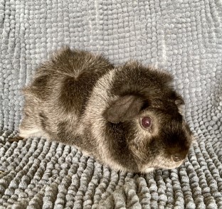 Satin california sølvagouti hvirvelkrydsning han (kastrat). Født 2.4.22. Søn af Stella og Duma. Kastrat.