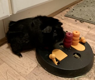 Sort/hvid brindle abyssinier, hun. Født 07.05.2021. Pensioneret.