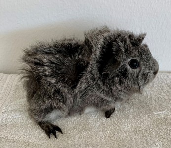 Stella fødte lidt vel tidligt og havde vist tegn på ikke at være helt tilpas de sidste par uger af drægtigheden. Det viste sig at hun havde en blæresten, som efterfølgende blev fjernet. Af et kuld på 3 meget små og 1 lidt større unge, var den store dødfødt, de to mindste (satin zobel) døde 4-6 dage efter fødslen, og tilbage var kun den tofarvede Mighty Mouse, som blev støttefodret med babygrød og C-vitamintilskud, da han ikke gik normalt og jeg mistænkte C-vitaminmangel grundet mangelfuld næring under drægtigheden og fra Stellas mælk. Mighty Mouse bliver her i opdrættet og er en livskraftig lille bandit, selvom han er lille og vokser langsomt.